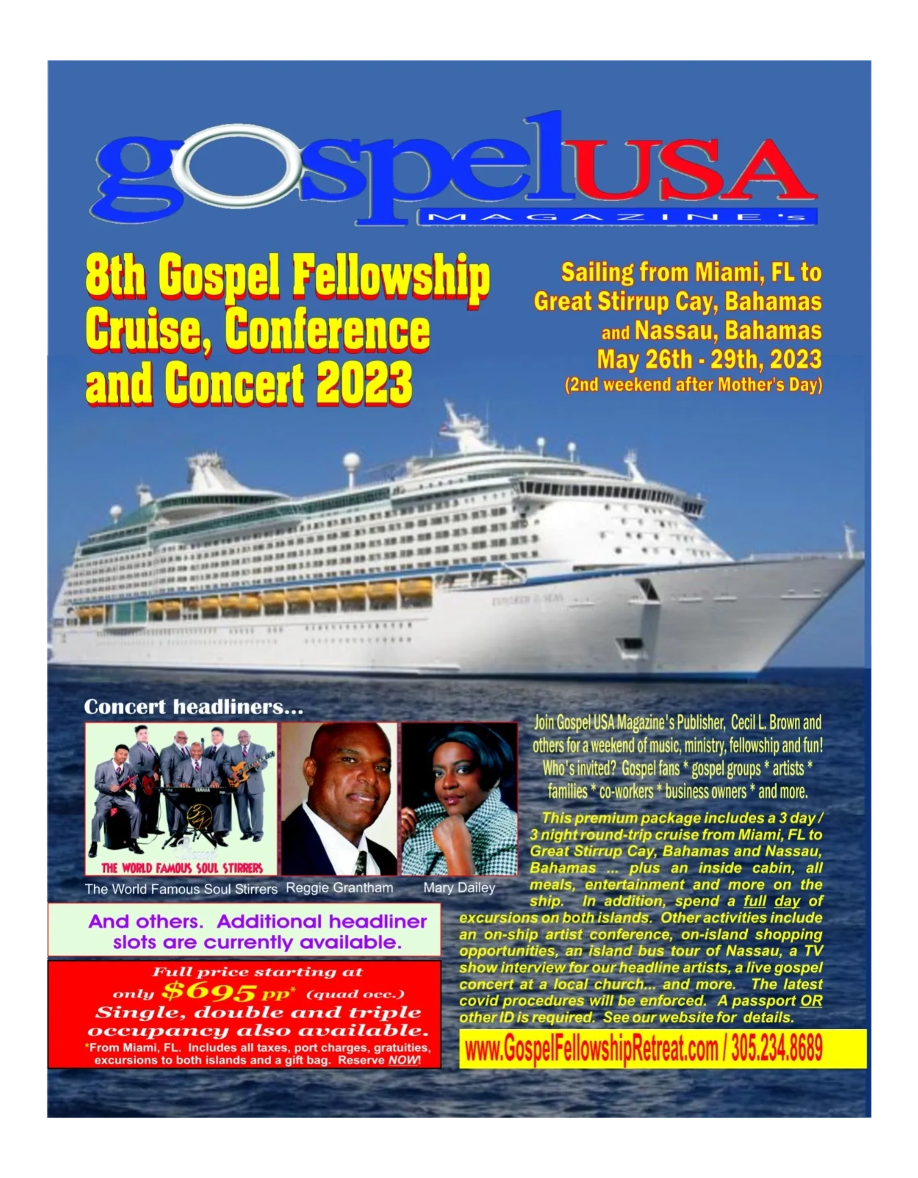 Have a copy of your favorite original gospel song included on our next gospel music compilation CD. We will attach that CD to our next semi-annual issue and postal mail them to every Gospel USA Magazine subscriber along with hundreds of key gospel industry personnel. Call us at 305.234.8689 for details.